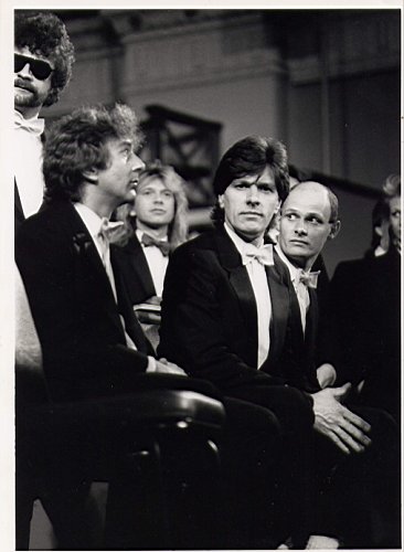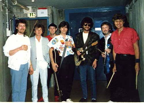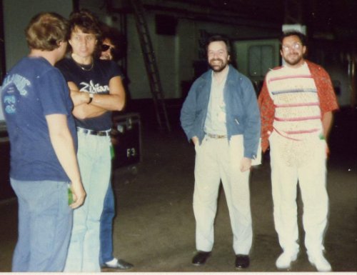 Stuttgart 13 July 1986. End of another era. Phil Hatton took this shot of us of ELO in the bowels of the concert hall at Stuttgart just before ascending to the stage for the last gig of the century. |
